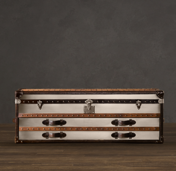 I've been a *little* obsessed with trunks for a while now. After seeing them on a few home decor blogs and TV shows I decided we needed one as a coffee table for B's man cave. I just needed to find the perfect mix of rustic and modern. Enter the Mayfair Steamer trunk from Restoration Hardware.